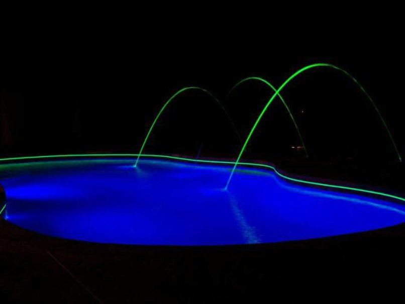 In addition, we have fiber optic lighting around the perimeter and fountains that shoot from the deck and arch into the pool! As new grandparents, we are carefully designing our pool with our grandchild in mind. The second step will be a large platform, so our granddaughter can enjoy the pool with us!